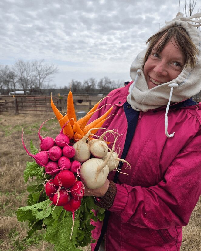My partner Josh and I started Shy Coyote Farm back in 2022. We originally met when we were working together on an organic farm in Oregon. We had a shared love of farming, animals. music and art. We had each been working in the agricultural/horticultural world for many years. When a family event required us to move back to San Antonio, where I am originally from, we took the opportunity to use all of our skills and knowledge acquired over the years to start our own small farm. Things have been up and down since we began, but overall after 3+ years we are still going strong!