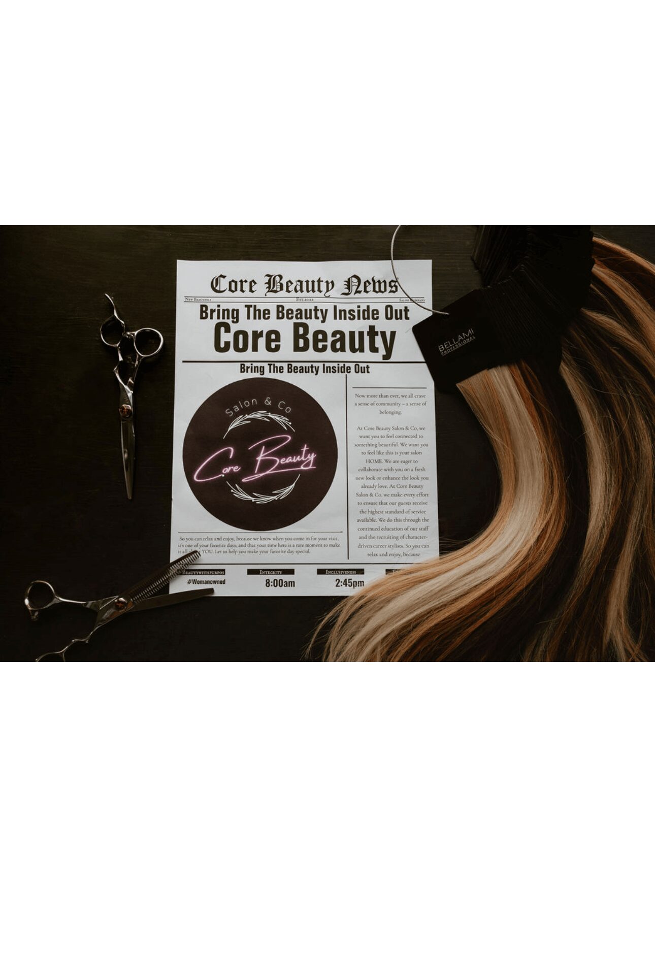 At Core, we know now more than ever we crave a sense of community belonging and unity. We make every effort to ensure our guest recieve the highest standard of service. Continued education is a huge thing for us, as well as a career driven structure for our stylists. We are a luxury salon and specialize in color, extensions, balayage, highlighting, scalp, keratin treatments and makeup. We are known and proud of our trademarked mantra “Bring the Beauty Inside out” which has been what we lead by everyday.