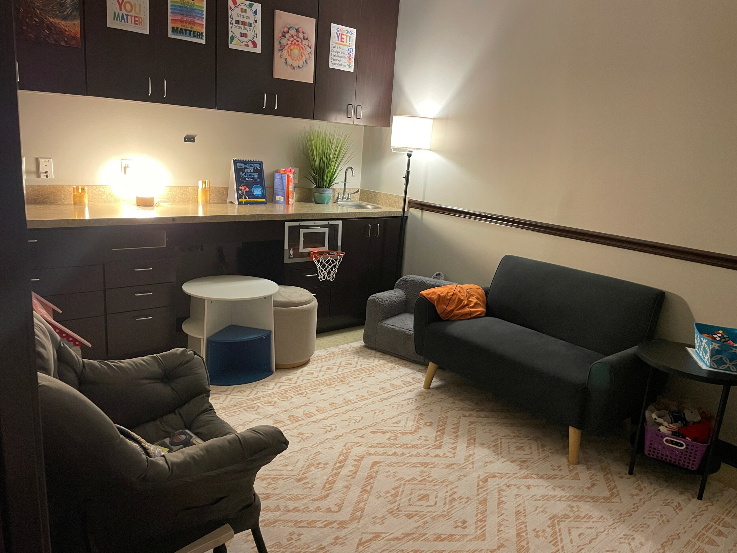 I specialize in play therapy for children, helping with emotional regulation and coping skills, coping with grief and loss, anxiety, and navigating changes at home. I am credentialed in child-centered play therapy and working on becoming an RPT (registered play therapist). I am also trained in sand tray therapy, further providing a trauma-informed expressive outlet for children to process big emotions.